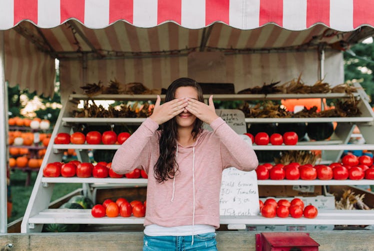 Put down your Pumpkin Spice Latte and grab that reusable bag. It's fall — but more importantly, it's farmers market season, which means you're going to need two hands to pick out all the best produce. Soon enough, the street in the center of your town will be lined with cute stands and pumpkins as far as the eye can see. From the second you park your car and start wandering down the aisles, you'll smell the sweet scent of cinnamon and aromas of apple pie. Now, all you need are these Instagram captions for farmers markets that will turn your feed from good to gourd-geous.