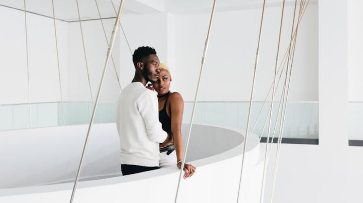 Sometimes people can say things they don't mean. We're all human — none of us are immune to bending the truth. But thankfully, knowing the basics of body language can help us decipher how the people around us actually feel. This is especially helpful when it comes to love. There are several body language clues your partner isn't in love with you, even when they say they say they are, that can be helpful to take note of if you feel they might be saying things they don't mean. According to body language expert Craig Baxter, looking at the body language in any relationship that you have doubts about can be helpful. "When a relationship is in trouble, it's body language that can reveal issues," Baxter tells Elite Daily.