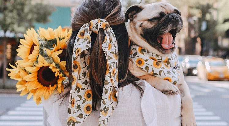 Not into how ~prim and proper~ an actual headband looks? A scarf tied around a low pony or a half-up look might suit your laid-back vibe a bit better, and it's just as fast. My personal favorite brand for summery scarves is Ari & M, because get this: For every human-sized scarf, you can buy a dog-appropro version for your pup! I know! I'm definitely buying the Sunflowers Silky Scarf ($28, ariandm.com) ASAP, and getting my dog one of her own to match. Not only is throwing on a scarf a super easy hairstyle, but matching with your dog is also an easy Instagram opportunity, so you're killing two birds with one stone via this tip. Don't say I never did anything for you.