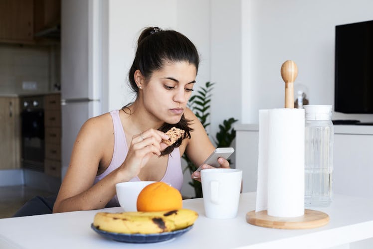 When you work out, do you often feel, about 20 minutes later, a hunger so strong that you could probably finish an entire pizza, a roast chicken, and a tray of muffins? Same, friend. The post-sweat session hunger is so, so real, and it can, at times, lead you to make a strange combination of food decisions that result in feeling, you know, a little gross — as in, why did I just dip tortilla chips in peanut butter and then have a piece of stale bread with pickles? The thing is, finding filling foods to eat after a workout isn't that hard. According to the results of a new study, you just need to do a teensy bit of planning ahead of time to make sure you're fueling your body with the stuff it actually needs.