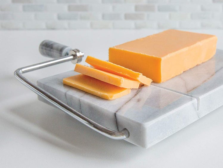 Whether you love to host wine-and-cheese nights or munch on a block of cheddar by yourself, you'll be glad to have this marble cheese slicer in your cabinet. The slab is 8 inches by 5 inches and comes with two stainless steel replacement wires, so you can cut cheese to your heart's desire. Additionally, the natural stone has rubber feet so that it wont slip and slide across your counter.