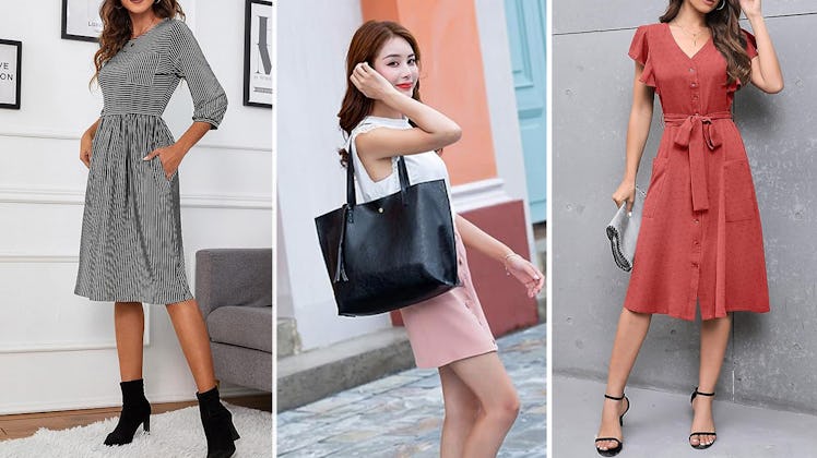 Flutter sleeves, cute colors, and a trendy V-neck make for one dress Amazon users can't get enough of. With hundreds of positive reviews, this button-up dress features an adjustable waist and midi-length. The polka dot pattern comes in seven colors, including green, pink, and red. It's very Mrs. Maisel meets modern day, and that right there is reason enough to click 'Add to Cart.'