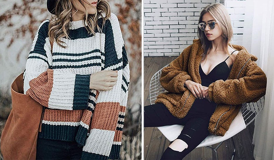 Consider thick cardigans or chunky knits in fun prints or unexpected cuts for an instant new breath of life on chilly mornings (and for all those Zoom calls). For your bottom half, amp up the warmth of your leggings with fleece-lined options and add a pair of faux fur slippers that'll knock your cozy socks off.