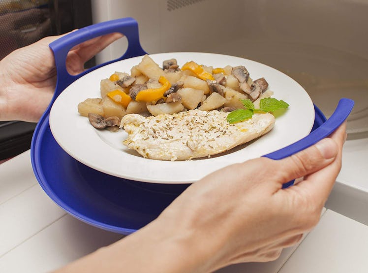 Tired of burning your hands on hot plates and bowls in the microwave? Try using the Exultimate cool-touch microwave grip. This handy tool stays cool in the microwave so that you won't burn your hands when removing your meal, and it even securely holds your dishes in place to help prevent any accidental spillage — plus, it's BPA-free.
