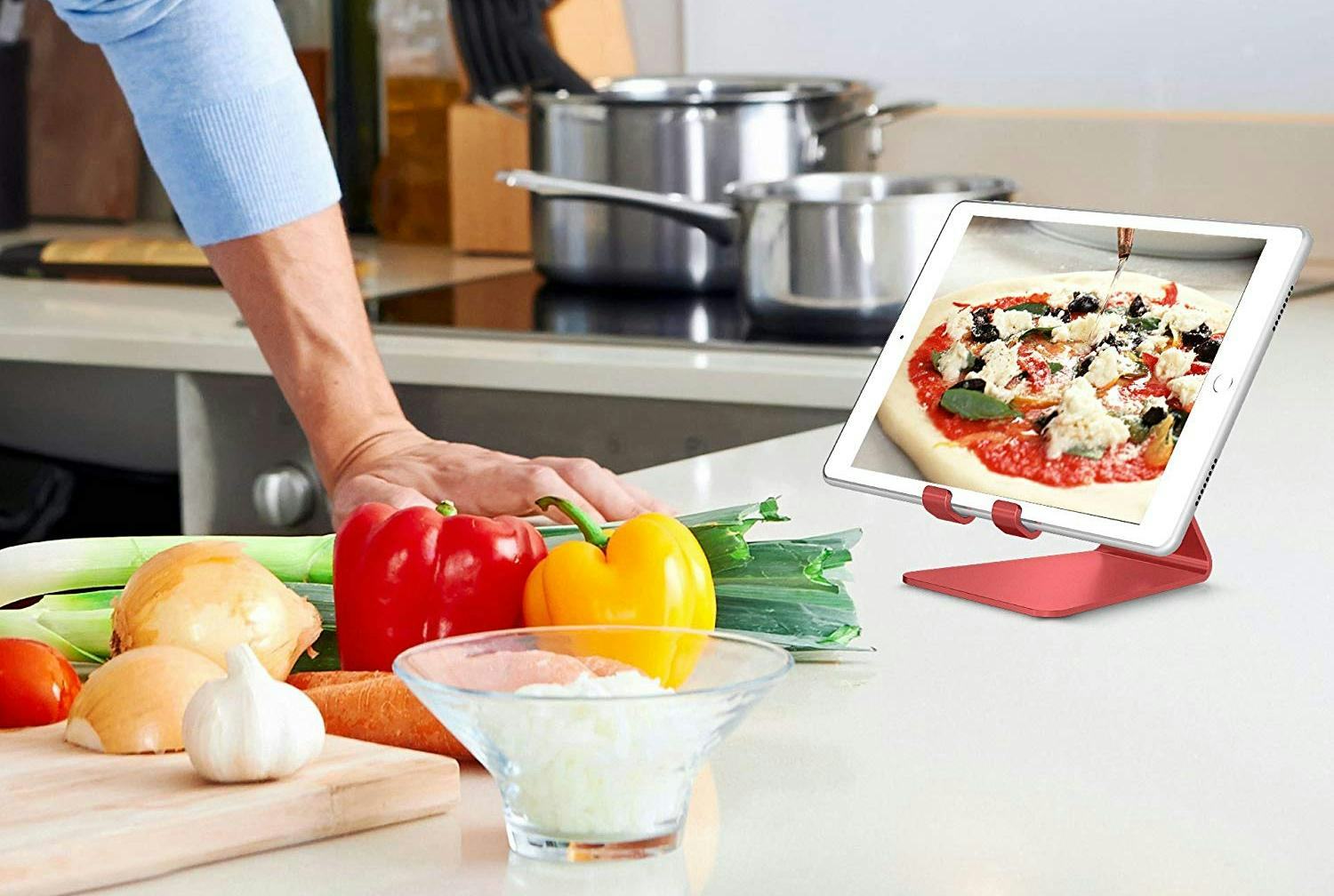 Made from strong and stable aluminum, this stand is compatible with most smartphones and tablets thanks to its durable, solid construction. It features silicone padding on the arms and back of the stand, as well as a silicone anti-skid pad on the bottom. Available in five colors, there's one for everyone in your household.