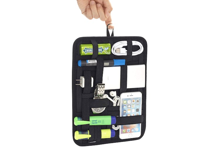 This electronics organizer uses sturdy elastic bands to secure items like your phone, charger, cables, and external hard drive. The flat organizer takes up almost no space, so it's easy to take in your carry-on bag, but you can also just use it at home so you never lose track of anything again.