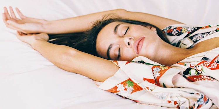 "Invite a long sigh of relaxation into your pre-slumber time by breathing out twice as long as you inhale," Gerstein tells Elite Daily, referring to a technique known as "2:1 breathing."