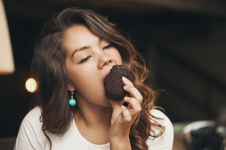Embrace the balance between health and your sweet tooth by adding a bar of your favorite chocolate to your grocery list, because according to Aguirre, the delicious food is also great for your mental health. "Results from systematic reviews indicate that consuming chocolate containing 75 percent or greater of cacao can shake off bad moods," she tells Elite Daily, "and may be protective against depression."