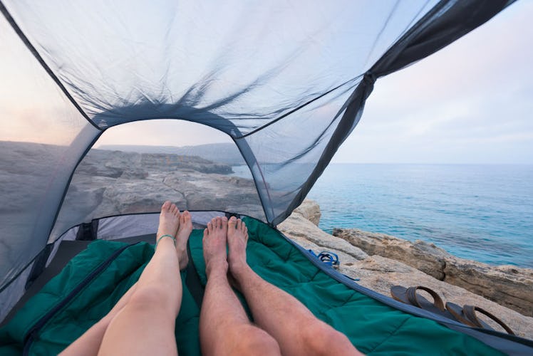 Summer is here, and you know what that means: It's time to go outside and enjoy all that nature has to offer — including getting au naturel with your partner in the great outdoors. S’mores and fishing are fun and all, but let's be honest, the best thing about camping is getting it on in nature. So, if the top of your summer to-do list includes some fireside freakiness, here are a few sex moves to try while camping that will really make your trip a memorable one.