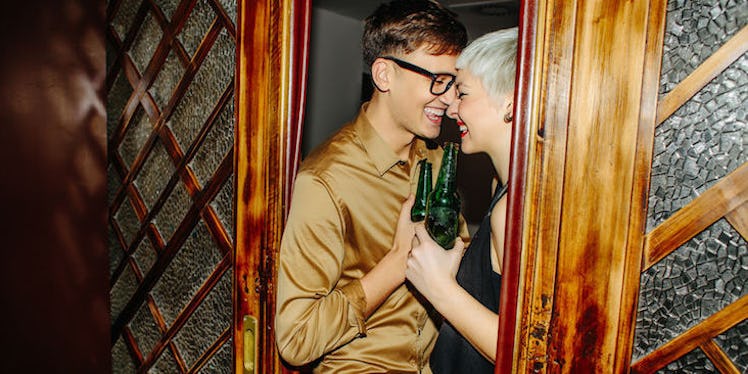 "You think we'd be kind of past the whole drunk makeout-in-a-bar-basement, but like, here we are," she tells Elite Daily, due to them both being in their mid-to-late 20s. After they made out, they went to go find some friends, and Katie saw him making out with another girl.