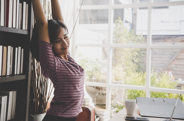 The good news is that there are definitely a few easy ways to integrate yoga into your day without drawing the entire office's attention to yourself. And, honestly, keeping your practice subtle and private during work hours will feel like an awesome little secret you have with yourself — on how you stay so freaking grounded, centered, and free of bodily tension all day long. Pretty soon, your co-workers might just be asking you what your secret is.