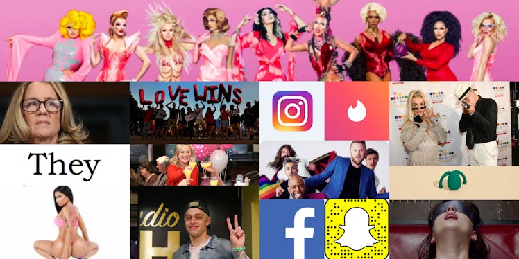Sharing your gender pronouns became a more widespread practice this decade. For trans and non-binary people, sharing pronouns in Instagram bios, on dating apps, in email signatures, and when meeting new people became a way to avoid being misgendered in conversation and subsequent dysphoria. And for allies, sharing pronouns helped to normalize the practice so the burden doesn't fall on the queer community. “They” was even named Merriam Webster Dictionary’s 2019 word of the year.