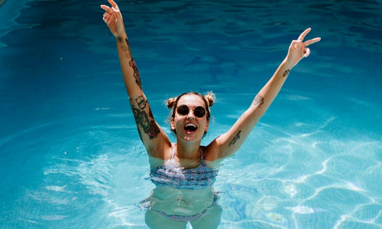 When I'm with my close friends and family, I show up to pool parties in my bathing suit, with no makeup on, and my hair in a topknot — but when I show up to a work event or a pool party thrown by friends of a friend, I usually wear a summer dress, a no-makeup makeup look and my hair in a cute hairstyle. And even though I secretly would rather be swimming, I avoid getting in the pool to avoid frizzy post-pool hair and raccoon eyes. Luckily, I found a bunch of easy hairstyles for wet hair on Pinterest, so I can finally go swimming at pool parties and stop worrying about looking like a hot mess. Now all that's left is finding an entirely waterproof makeup routine!