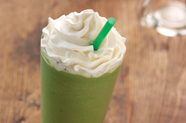 Now that you know how the Green Tea Crème Frappuccino is made, you can easily order up this extremely festive sip that isn't on the regular menu. To snag a tall Lucky Leprechaun Frappuccino, you simply ask your barista to add one pump of peppermint syrup and some java chips to the Green Tea Crème Frappuccino. You'll wind up with the coveted green color that rules St. Patrick's Day, and you don't even need a lucky four-leaf clover to get it.
