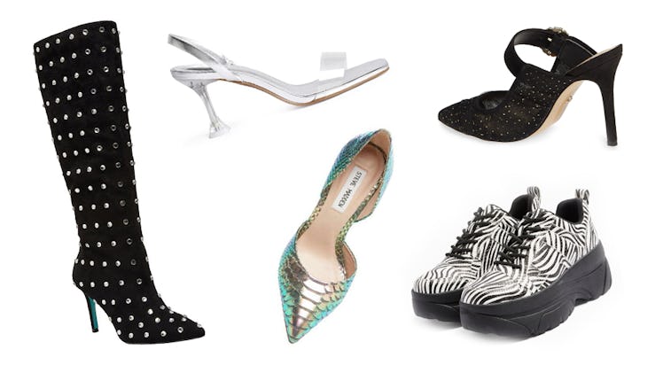 With just a few hours left in 2019, you're likely putting the finishing touches on your New Year's Eve look — or, you're running around last-minute, looking for outfit ideas to pull together. Fear not! When I struggle to create an outfit, I always start from my feet and work my way up, so I've rounded up six shoes that are perfect for New Year's Eve festivities and can totally inspire your best NYE outfit yet. Whether you like a bold boot, a classic pump, or comfy kicks, I guarantee you'll see a shoe you like on this list.
