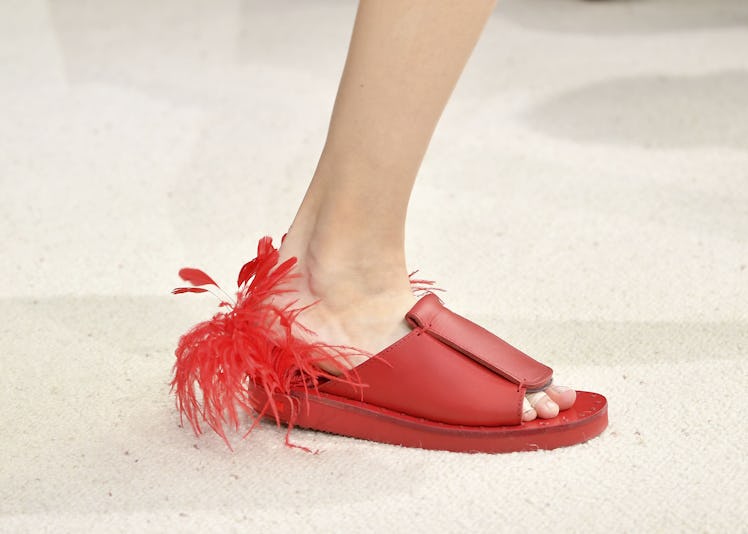 Beautiful, delicate feathers in a rainbow of hues adorned heels and sandals at Simone Rocha, Dries Van Noten, and Valentino, making for what is arguably spring's airiest footwear trend. It's perfect for any weddings or parties you might have coming up and is the perfect example of a statement shoe that will totally make a look.