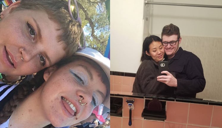 So, we had been dating for a week and she was like, 'Do you want to go to SF pride with me as my girlfriend?' And I was like, 'Yes.' We sat in Dolores Park people watching with glitter on our faces all day. And that night she told me she loved me. The caption is because we were making fun of Pride as a concept and people who say things like, 'Love is love,' as if relationships are the center of queer oppression and not, like, our right to exist. And that was the year gay marriage was legalized. It was all new and both of our first like real lesbian relationships so we were all over each other! Our friend came with us and they were like ugh. I think I asked if I could post it? I'm so much more into social media than she is, so I try not to take offense that I post more often that her.