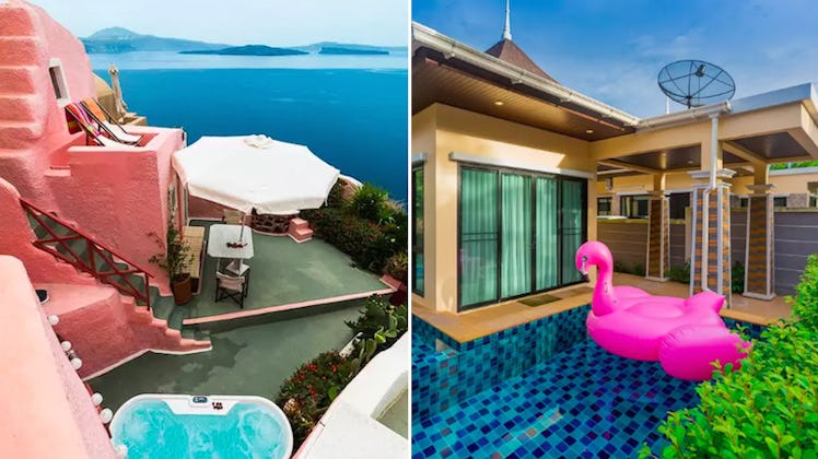 Everything about this millennial pink cave home in Santorini, Greece, is #goals, and I seriously can't get over it. This home is featured on the Sisterhood of the Traveling Pants and it's clear as to why. It's a vibrant pop of color in a sea of traditional white and blue cave homes, which is why you'll love it even more. You can head down to the beach by day, and catch the best island views straight from your jacuzzi by sunset.