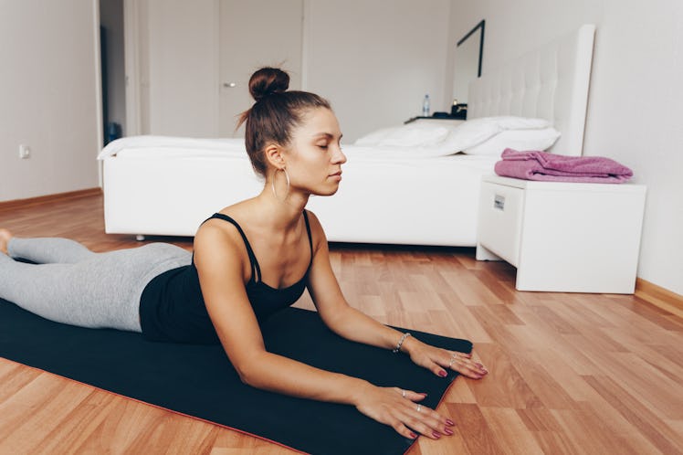 Anyone who thinks that delicious Thanksgiving food is reserved for one day only has clearly never experienced the sheer joy of leftovers. Stuffing, turkey, pumpkin pie, and cranberry sauce goodness can easily go on for weeks after Turkey Day, and it's literally glorious. But what's not so glorious is your seemingly permanent, achey food baby. That lump in your tummy needs relief ASAP, which is where a few yoga poses for stomach pain are sure to come in clutch.