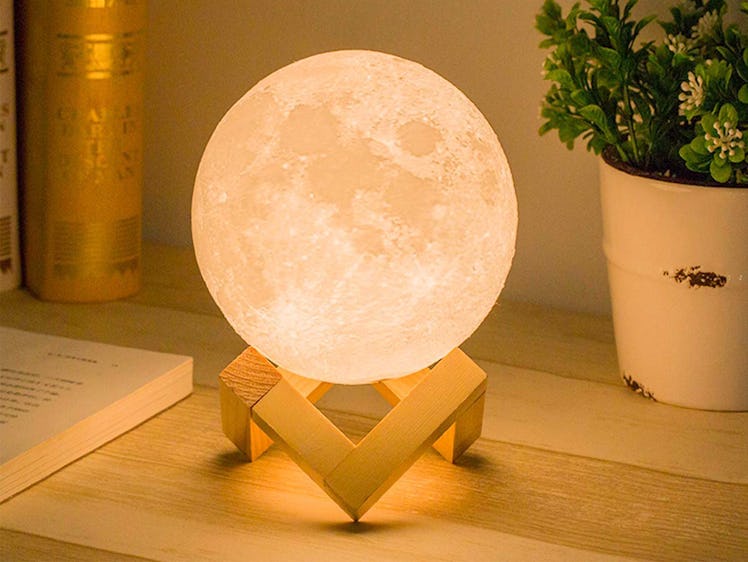 There are ordinary night lights — and then there's this out-of-this-world moon lamp, designed from eco-friendly materials by a 3-D printer. The futuristic lamp includes a rechargeable battery and lasts between eight to 10 hours. You can adjust its brightness from white to yellow.