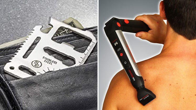 This useful pocket tool features 11 different functions in a small, stainless steel device that's completely flat and compact enough to fit in his wallet. The gadget includes a can opener, bottle opener, four-position wrench, two-position wrench, butterfly screw wrench, knife edge, saw blade, screwdriver, ruler, and more. Plus, it's equipped with a hole in one corner so he can attach it to his keychain.