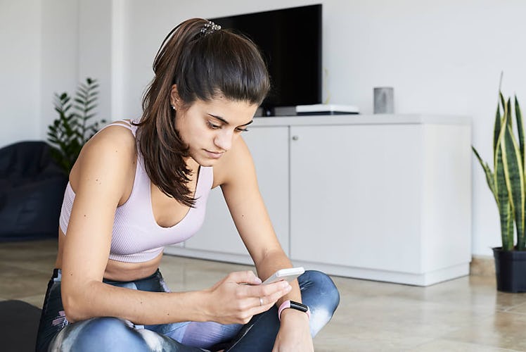 "People with busy schedules that cannot seem to justify a gym membership or commute time to get to and from a gym may recognize that a workout regimen at home is more realistic for their schedule and budget," certified personal trainer and holistic nutritionist, Ashley Walter, who also uses at-home workouts as a back-up plan if she can't get to the gym, tells Elite Daily. "[An at-home workout] is amazing for people who want to keep up a regular workout regimen to get to their goals and can devote 30+ minutes to a workout guided from an app or online."