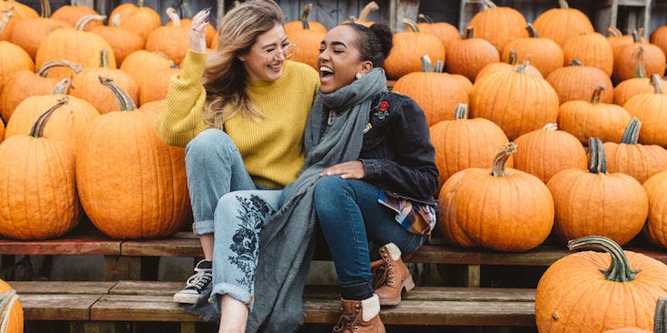 It's the most wonderful time of year. I'm Jewish, so for me, that isn't Christmas. Nope. It's pumpkin spice season (per Starbucks rolling out its seasonal flavors), which means autumn has basically arrived. Gone are maxi dresses, baseball hats, and frosé; bring on the turtleneck sweaters, apple cider candles, and knit beanies. Fall is my favorite season due to the colored foliage, yummy apple-themed treats, Halloween, and cooler weather (and my birthday, too). Along with cooler weather comes cooler dates. Fall date ideas are focused around the best parts of the new season, and are easy to do with someone you're newly dating or in an established relationship with.