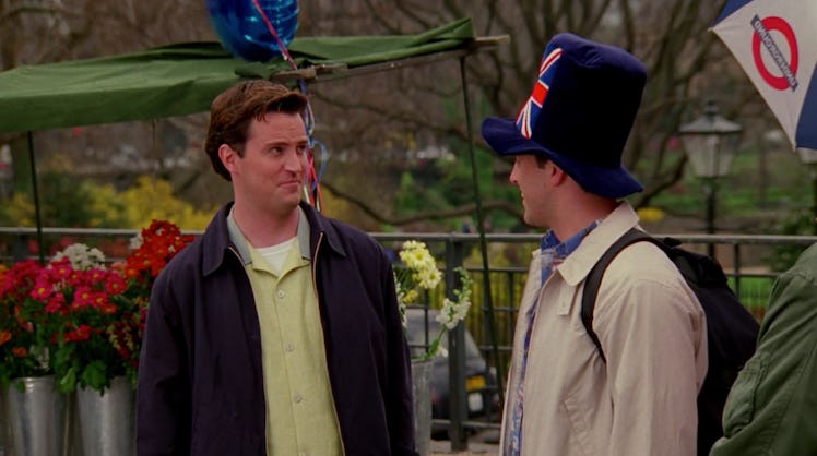 Every time Chandler kissed Monica, he would have to pucker up again for Phoebe and Rachel (Joey was quick to dodge a kiss at the door.). He claimed he was just trying to bring a little culture to the group, but we all know there was a very big elephant in the room, and that it totally wasn't European — just embarrassing.