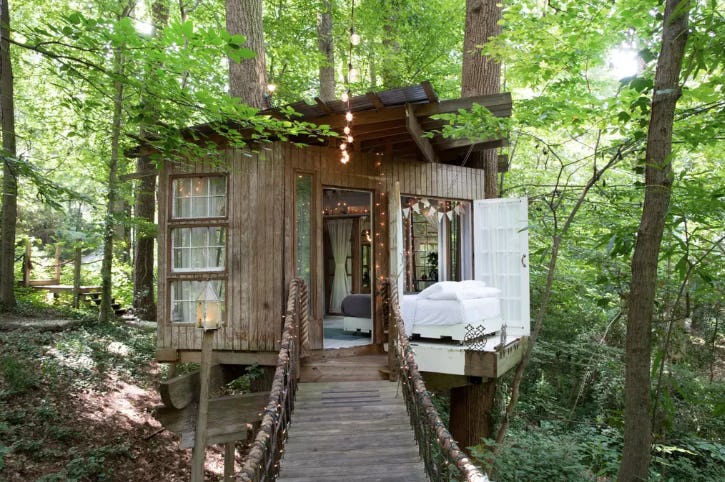 According to the listing, this secluded treehouse is one of the most sought after Airbnb rentals in the world, and I can totally see why. You and your boo will be sleeping above the trees in this sweet Atlanta, Georgia hideaway. There are three different sections which are all connected by hanging bridges. Live out your childhood fantasies in this fairy tale treehouse.
