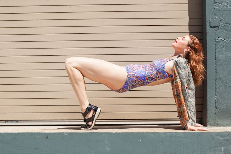"Legs up the wall pose is an easy and restorative yoga pose, helping the mind and body relax while releasing stress," Parker tells Elite Daily.