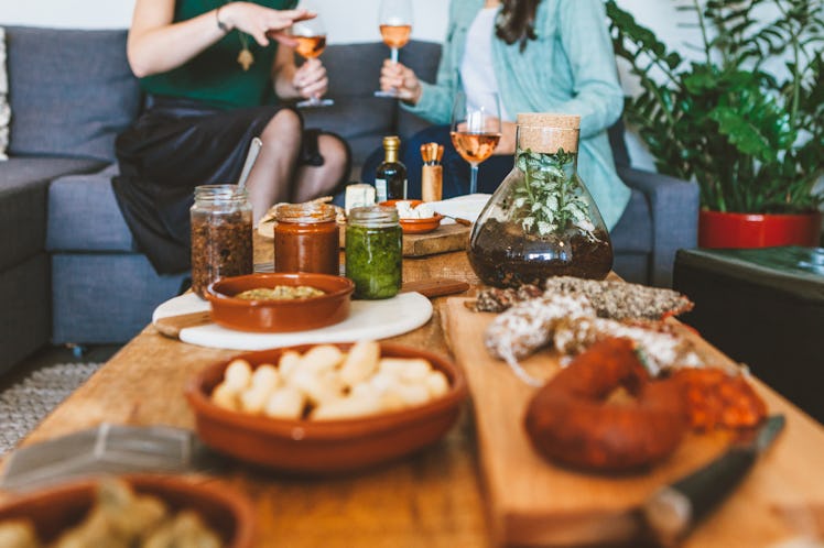 There's absolutely no extra stress of having to make something lavish. It's just a fun holiday-themed snack of delicious cheese that can pair so well with your wine. You and your girls could put on a favorite holiday movie to watch and unwind, or just sit around the fire and talk about everything you're excited about in the new year.