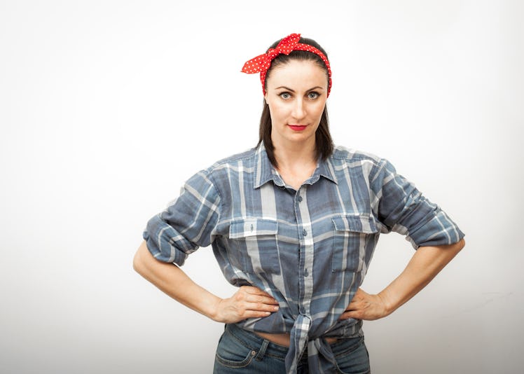 If you already have a denim shirt and a red bandana in your wardrobe, you can put together the ultimate Halloween costume that exudes girl power. If you don't, they're easy finds at your local mall. This Rosie the Riveter look is perfect for any lady who wants to say, "we can do it." And by "it," we also mean throw together a last-minute Halloween costume like a total girl boss.