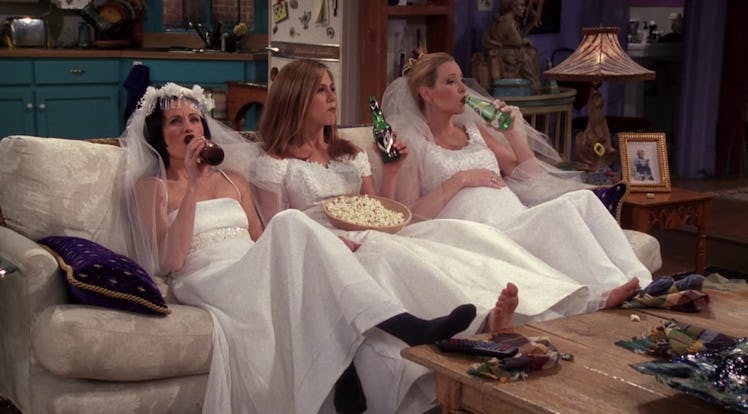 The girl trio's most popular scene in Friends might be when they all sat on the couch in wedding dresses.