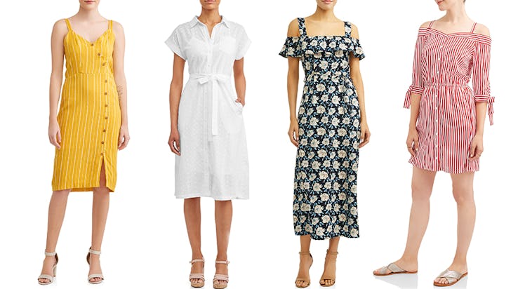 In the winter, I'm all about splurging on heavy knits and heat-tech fabrics to stay warm, but real talk, sometimes it's hard to justify shelling out as much coin for flimsy, lightweight summer sundresses. I still want to look cute, though, so I'm always on the hunt for some reasonably-priced pieces in on-trend silhouettes that are as Instagram-friendly as the overpriced dresses I'm constantly window-shopping. To get the look for less, Walmart is one of my main go-tos, and I've rounded up eight summer dresses from Walmart that are under $30 you can shop if you want to save on style, too. Thank me later, but if we're going to the same beach party or brunch this summer, pls LMK so we can coordinate and not show up in the same Walmart dress. Thank you!