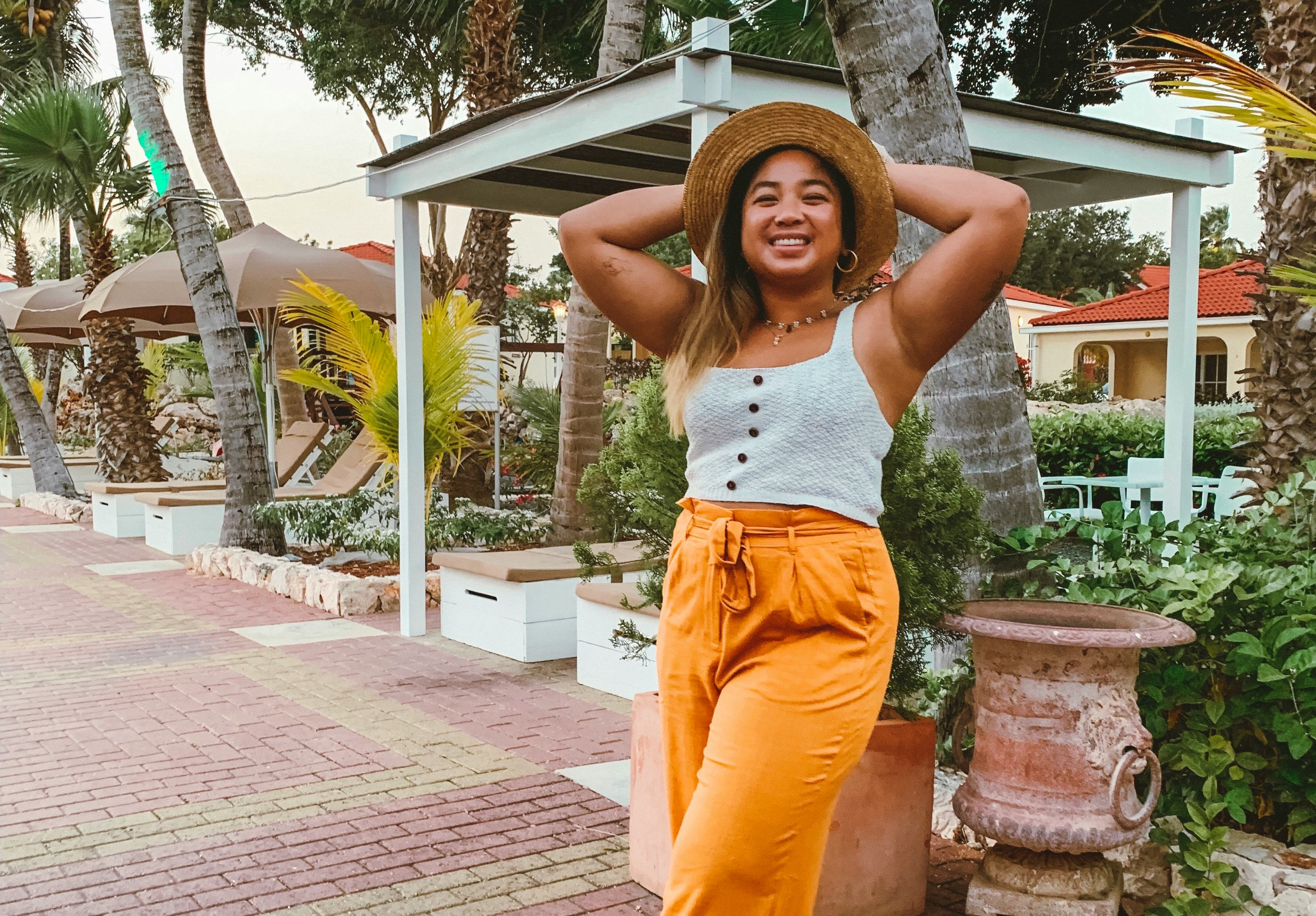 Consider purchasing this hat from Lack Of Color, which is similar to the one I'm wearing above. If I'm heading to a beach destination, I opt for a straw hat instead. My go-to is also from Lack Of Color.
