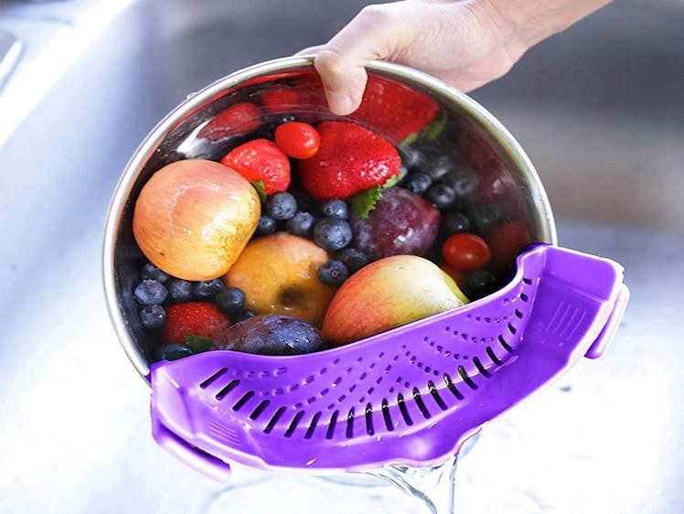 Your strainer can tip over in the sink if you're not careful, but the Salbree clip-on strainer almost erases the chance of that happening. This handy strainer is designed to fit pots, pans, saucepans, and bowls of all shapes and sizes — plus, the mesh is fine so that your ingredients won't accidentally filter through. Its compact size means it takes up hardly any space while in storage, and each order also comes with a garlic peeler.