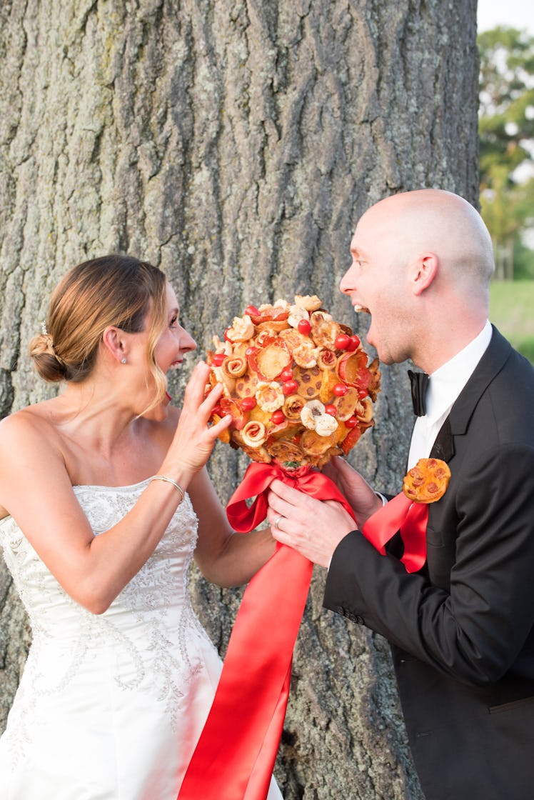 I admit, it's not my thing, but I will say I've never drooled over a bride's bouquet before. It might make you smell like the inside of an oven, but it'll make for some fun photos. They'll look cheesy, but that's the point.