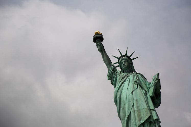 The Fourth of July is a national holiday that honors the adoption of the Declaration of Independence. The day oftentimes is spent enjoying the summer weather while sporting a lot of red, white, and blue. In the age of President Donald Trump, there are questions about what it means to be "patriotic," especially given some of his administration's divisive policies. One person took her issue with Trump's "zero tolerance" immigration policy to great heights on Wednesday, July 4. A protester climbed the Statue of Liberty on the Fourth of July to speak out against the separation of immigrant children from their parents at the U.S. border.