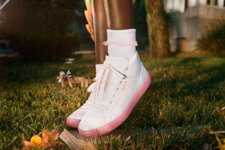 Set to drop on March 28 at adidas.com, the new styles will arrive just in time for spring. They're the newest arrivals in Adidas' Sleek line, which exclusively includes shoes based on the brand's tennis sneaker. "Designed for those who continuously create themselves, this clean silhouette complements any look," describes the brand on their website. While the classic all-white version featuring a soft leather upper, lace-up design, and rubber sole is cool as-is and would make for the ideal go-to white sneaker that every fashion aficionado will tell you you have to have, trust me when I say that the upcoming upgrades are about a million times better.