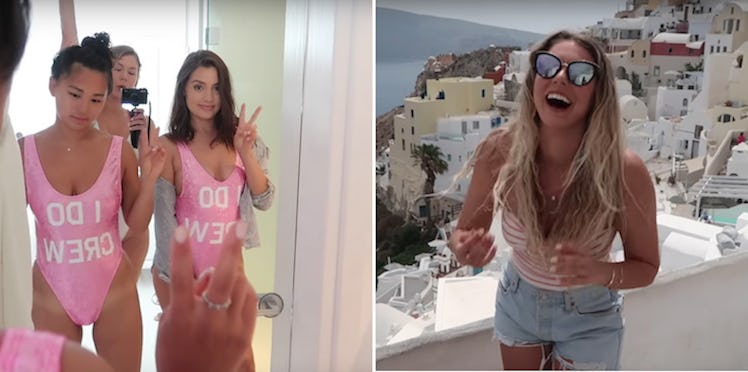 Summer means pulling out our passports and traveling any chance we can get. Some of us have spent the past few months booking getaways, or at least stocking up on some cute bathing suits for those weekend beach days. Even buying a couple of floral dresses was necessary, especially since it's wedding season. Maybe your bestie is about to get married, or you've just already started wondering what you're big day will be like. Fashion, lifestyle, and beauty vlogger Alex Centomo's bachelorette party in Greece with her girl crew is major #goals — and you're probably hoping your besties are getting some ideas for when it's your turn.