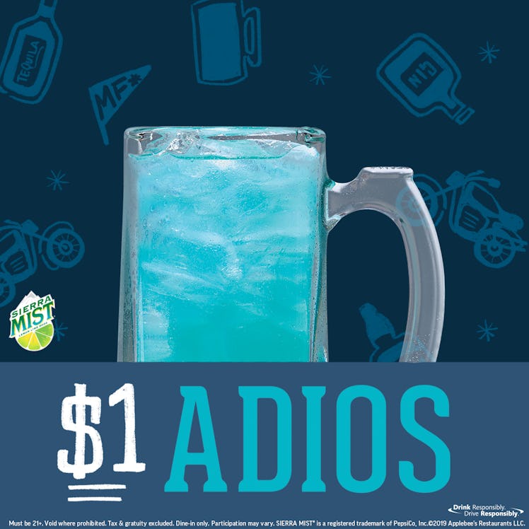 Before you get your heart set on getting yourself an ADIOS drink, however, definitely give your neighborhood Applebee's a call to ensure they're serving them. According to the brand, price, participation, and availability of the specialty drink may vary. And I simply wouldn't want to risk you getting your heart broken.