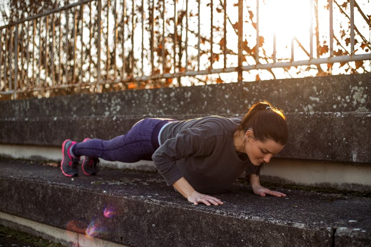 "I think a safer way of performing a burpee is using a small box or bench," the trainer tells Elite Daily. "The metabolic function is still there, but the chances of a misstep or hyperextension with the low back are lowered. If anything, the pace of the exercise increases."