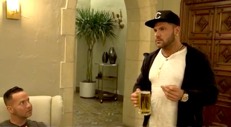 EARLIER: When the very first episode of Jersey Shore Family Vacation premiered, Ronnie definitely seemed like he was going to be in the most trouble because of this show. Every member of the cast (except Pauly D) was going into this series with either a spouse or a serious significant other at home, so it sounded like the endless stream of hookups that defined the original Jersey Shore was going to run dry in Family Vacation. Ronnie reopened the dam. Last week, Ronnie brought home a French woman that he met at a nightclub, and after closing the door to his room with her, the camera picked up on some very suspect noises. Luckily, Pauly D was able to intervene and get it through Ronnie's alcohol-soaked skull that he should not cheat on his pregnant girlfriend, but the damage may already be done.