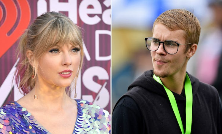 When you think of young, millennial superstars, there are a handful of names that land at the top of the list. Undeniably, Justin Bieber and Taylor Swift hold two of the highest seats on the pop-culture totem pole. Their careers, for the most part, have progressed adjacent to one another after Bieber opened for Swift on her 2009 Fearless tour. Naturally, they have their independent relationships with Selena Gomez in common, too. Today, they're most connected via The Great Scooter Braun Conflict of 2019. It leaves fans wondering — are Taylor Swift and Justin Bieber friends? Were they ever? I guess my response is: Define "friends."