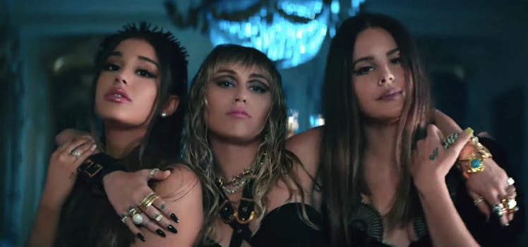 In the video, Grande, Cyrus, and Del Rey basically give a big f*ck you to men. They traipse around a mansion delivering looks in their angel outfits, and fans are particularly obsessing over Cyrus and Del Rey's verses.