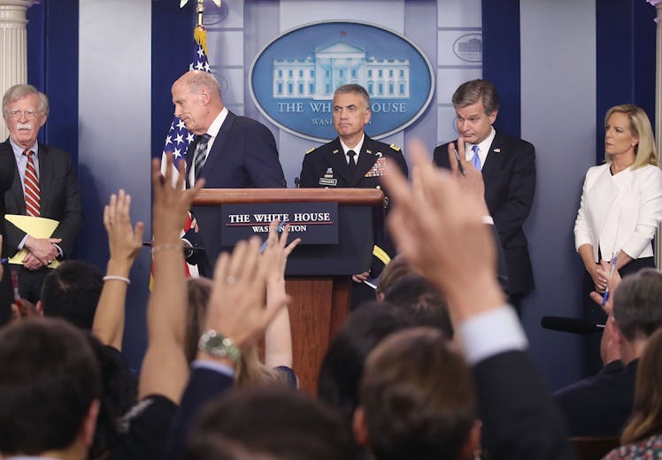 To drive the point home, Coats and Wray were joined at the press briefing by a number of other high-level security officials, including Department of Homeland Security Secretary Kirstjen Nielsen, National Security Agency Director Paul Nakasone, and National Security Advisor to the President John Bolton.
