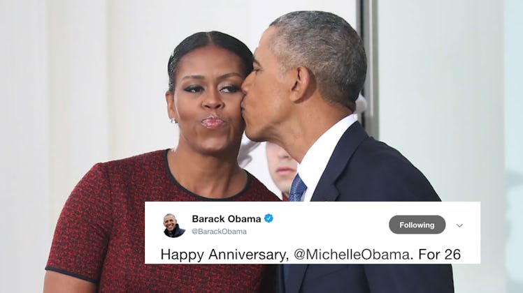 There are some days when you truly think love is dead. Like the days where you hear couples like Channing Tatum and Jenna Dewan, Brad Pitt and Angelina Jolie, and Jennifer Aniston and Justin Theroux split up. But then there are other days where you're reminded that love is most definitely alive. And today, Wednesday, Oct. 3, is one of those days. America's former first couple is celebrating a special occasion, and it's a big one. Barack and Michelle Obama's tweets about their 26-year wedding anniversary will seriously give you hope.