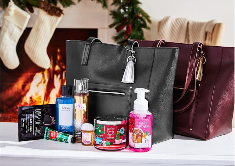 This year, when shoppers spend over $30 they'll have the option to purchase a cute tote for just $30 more, in either black with silver accents or burgundy with gold accents. Inside the tote are seven of the brand's best-selling products, and the overall gift is valued at $115. Based off the products shown in their Instagram post, it appears that the set includes a Winter Candy Apple 3-Wick Candle, a Twisted Peppermint Gentle Foaming Hand Soap, a Vanilla Bean Noel Hand Cream, an In The Stars Fine Fragrance Mist (the brands ~all new~ fragrance this year), a men's Ocean 2-In-1 Hair + Body Wash, a Champagne Toast PocketBac Hand Sanitizer, and a Lump of Coal Charcoal Sheet Mask With Purifying Charcoal. Truly something for everyone!