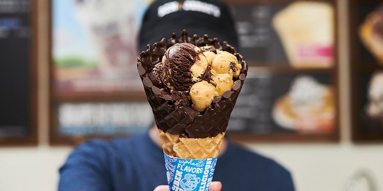 Hold up, because that isn't even where the good news ends. Customers will also be able to order any of the new Dough Time flavors in a Chocolate Dipped Waffle Cone. This includes two scoops of any flavor, along with a chocolate-dipped cookie dough pop. OMG, I need all of this in my possession immediately. Please and thank you.