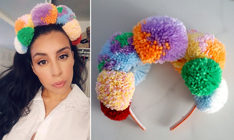 I searched all over for the ideal on-trend headpiece to tap into my Sasha Fierce and came across a cute pom-pom-adorned headband. I couldn’t decide whether it was actually wearable, or if it just seemed understated in comparison to the ones worn by Beyoncé, so I figured it was perfect. The only way I could describe it is like this: It’s a colorful cluster of multicolored pom-poms that feel like a cooler, less played-out version of a flower crown (where was this when I was shopping for Coachella?). The only problem is it’s the prize in a giveaway — it’s not actually for sale. The description in the caption says it’s a “handmade, one-of-a-kind piece,” so I figure, if someone else could make that headband, so can I. After swiping through the photos and carefully studying every color, size, and placement of each pom-pom, I make a craft-store run and buy everything I need to make my own.